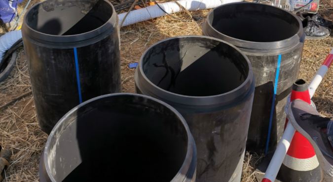 (2)局部现场固化主要分人工玻璃钢接口和玻璃纤维布气囊局部成型两种技术,其中玻璃纤维布气囊局部成型技术比较常用,在损坏点固化树脂,增加管道强度达到修复目的,并可提供一定的结构强度。